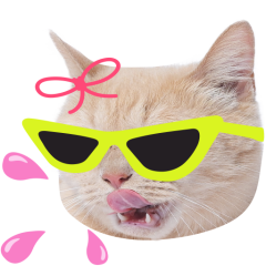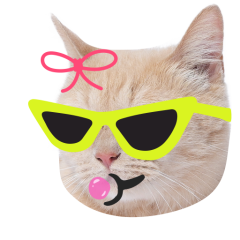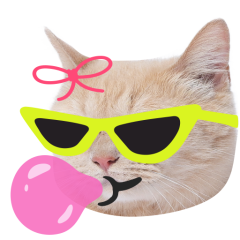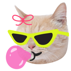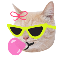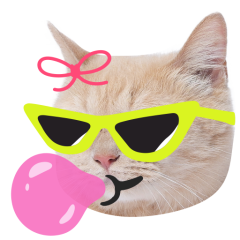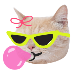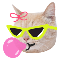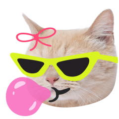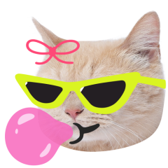 Este es el sticker nº4 del conjunto Catster. An orange cat wearing neon glasses looks cool as it blows a pink bubble gum bubble. The cat appears stylish and relaxed. En total, hay disponibles en nuestro sitio 21 stickers animados en Catster. Este sticker está disponible para descargar en los formatos gif, webm, webp, png.