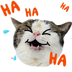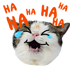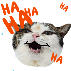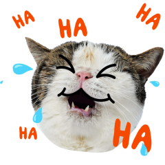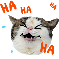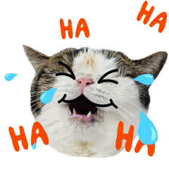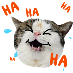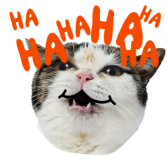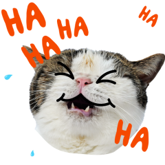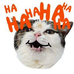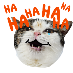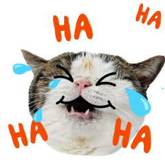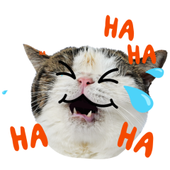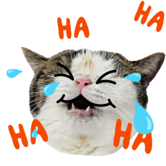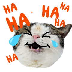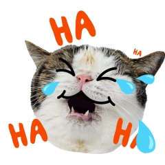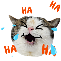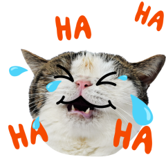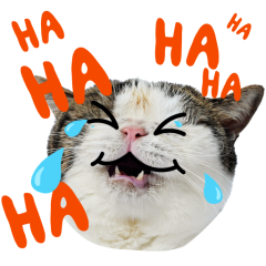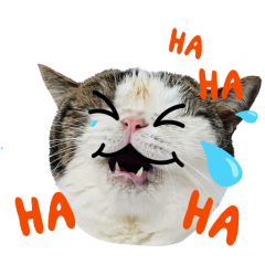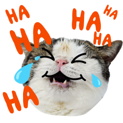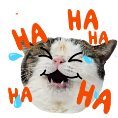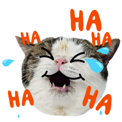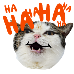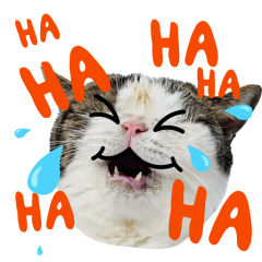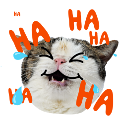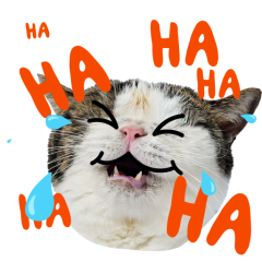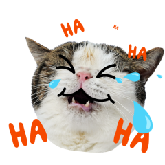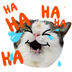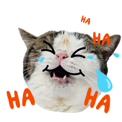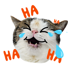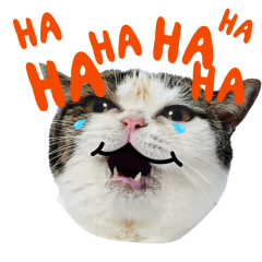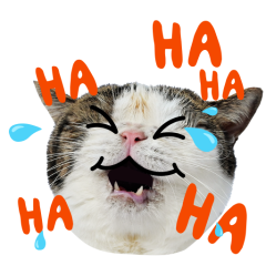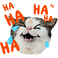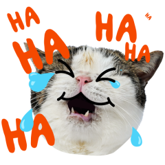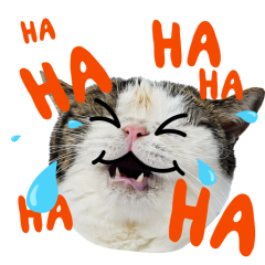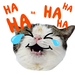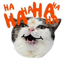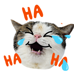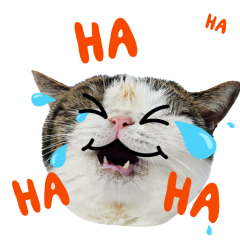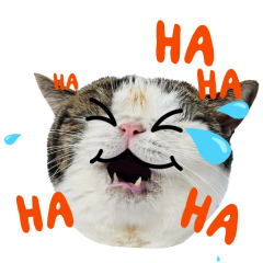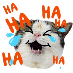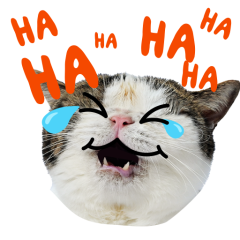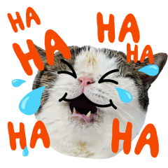 Este es el sticker nº6 del conjunto Catster. A black and white cat with squinting eyes is laughing uncontrollably, with the words "ha ha ha" popping up around it. Tears fly from its face with each laugh. The cat looks joyful and amused. En total, hay disponibles en nuestro sitio 21 stickers animados en Catster. Este sticker está disponible para descargar en los formatos gif, webm, webp, png.