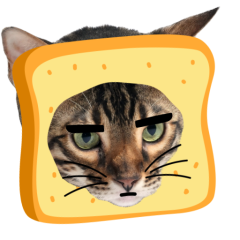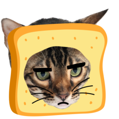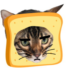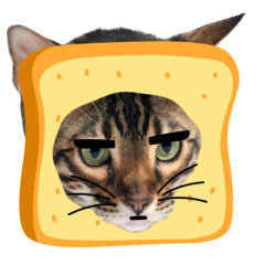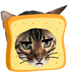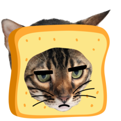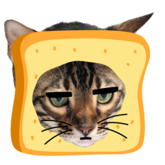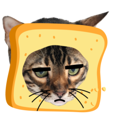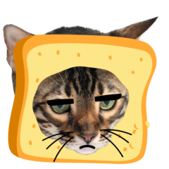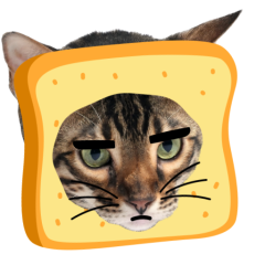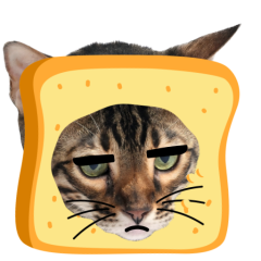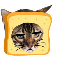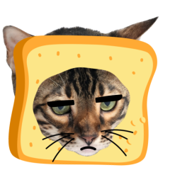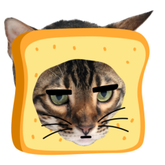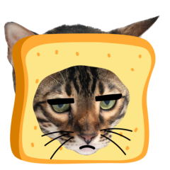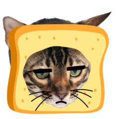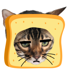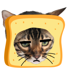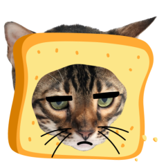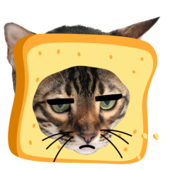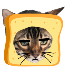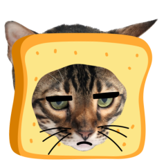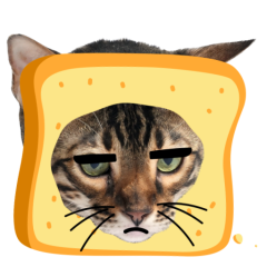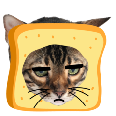 Este es el sticker nº9 del conjunto Catster. A cat with its face sticking out of a piece of bread looks unamused and sighs in annoyance. The cat appears bored and irritated. En total, hay disponibles en nuestro sitio 21 stickers animados en Catster. Este sticker está disponible para descargar en los formatos gif, webm, webp, png.