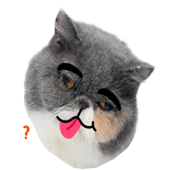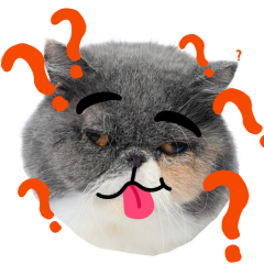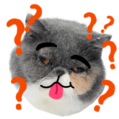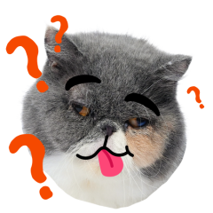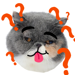 Este es el sticker nº18 del conjunto Catster. A grey cat with wide eyes and its tongue hanging out, glancing from left to right before looking forward. The cat is surrounded by popping question marks. The cat looks confused and curious. En total, hay disponibles en nuestro sitio 21 stickers animados en Catster. Este sticker está disponible para descargar en los formatos gif, webm, webp, png.