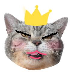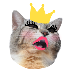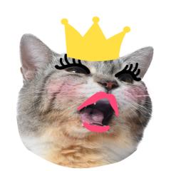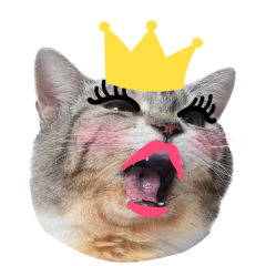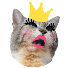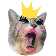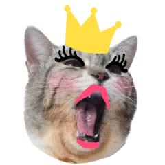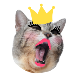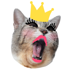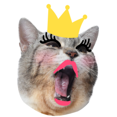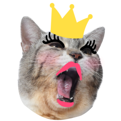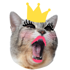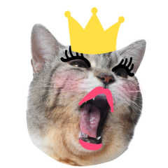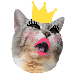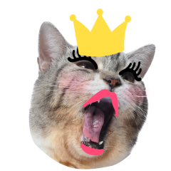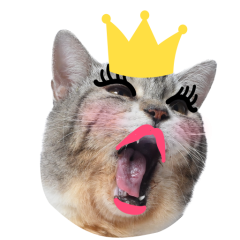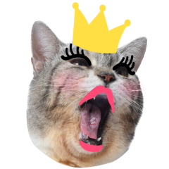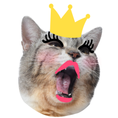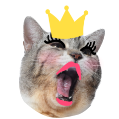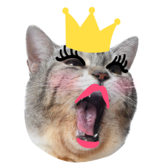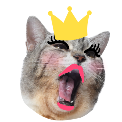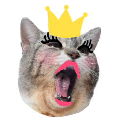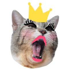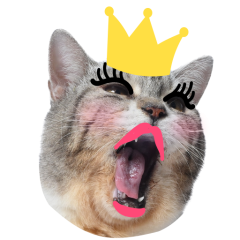 Este es el sticker nº19 del conjunto Catster. A grey cat wearing a gold crown and red lipstick roars proudly, as if saying "yaaas queen." The cat looks fierce and empowered. En total, hay disponibles en nuestro sitio 21 stickers animados en Catster. Este sticker está disponible para descargar en los formatos gif, webm, webp, png.