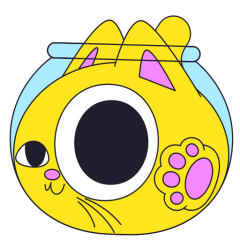Este es el sticker nº1 del conjunto Merve The Cat. Merve, the cute little yellow cat inside a fish bowl sways & wobbles, rotating the fish bowl. The bowl rotates showing the cat's back, dancing buttocks and tail. En total, hay disponibles en nuestro sitio 20 stickers animados en Merve The Cat. Este sticker está disponible para descargar en los formatos gif, webm, webp, png.