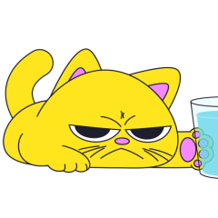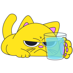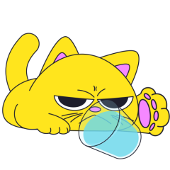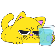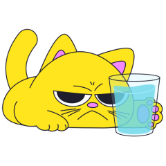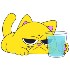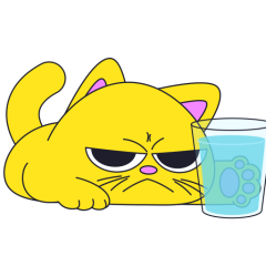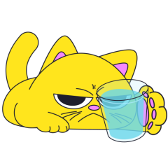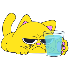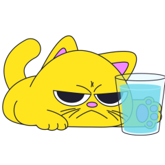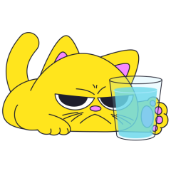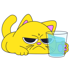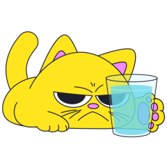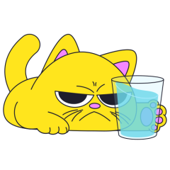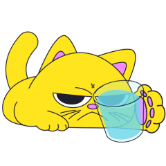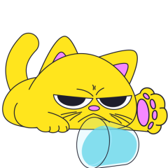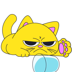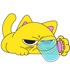 Este es el sticker nº4 del conjunto Merve The Cat. Merve, the cute little yellow cat is laying on an top of a counter or table top, slowly pushes off and drops a glass filled with water from the counter top. En total, hay disponibles en nuestro sitio 20 stickers animados en Merve The Cat. Este sticker está disponible para descargar en los formatos gif, webm, webp, png.