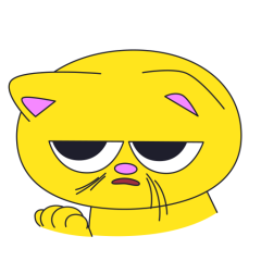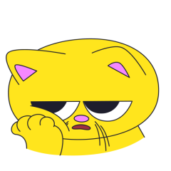 Este es el sticker nº13 del conjunto Merve The Cat. Merve, the cute little yellow cat sits resting it's head on it's arm looking apathetic. Merve then raises it's head and nods left and right indicating "No" and displeased. En total, hay disponibles en nuestro sitio 20 stickers animados en Merve The Cat. Este sticker está disponible para descargar en los formatos gif, webm, webp, png.